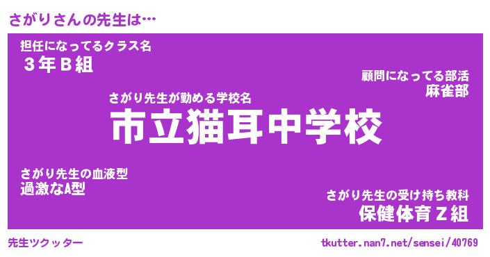 | ヒーロー風カッコイイあだ名 | 『スーパーサガリ』『ウルトラさがりマン』 |