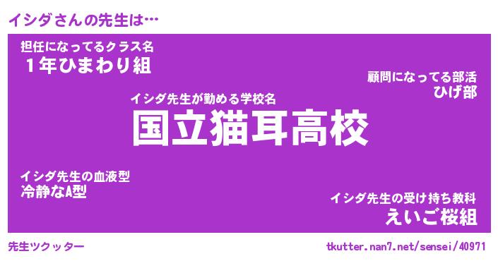 | ヘコむあだ名 | 『イシにー』『つくし』『イシ太郎』 |