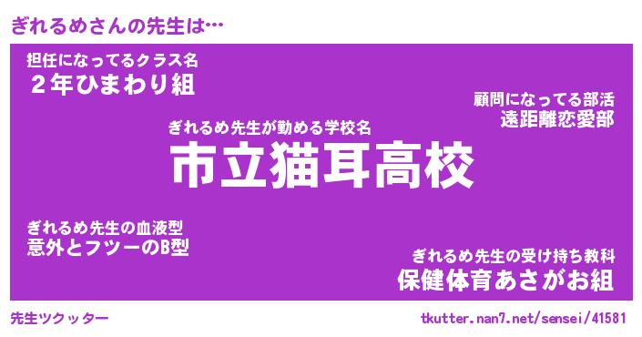| 意味不明あだ名 | 『ペロリンぎれるめ』『永久保存ぎれるめ』 |