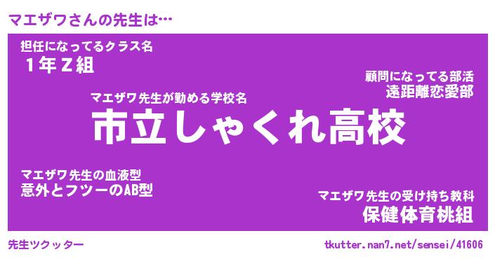 | 意味不明あだ名 | 『ペロリンマエザワ』『永久保存マエザワ』 |