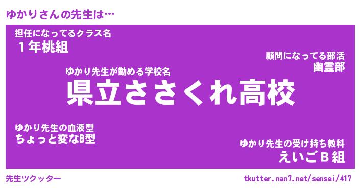 | ポケモン風あだ名 | 『ユカチュウ』『ユカリダネ』 |