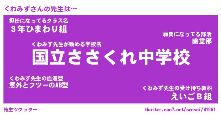 | 意味不明あだ名 | 『ペロリンくわみず』『永久保存くわみず』 |