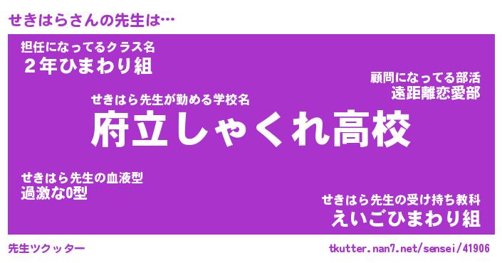 | 意味不明あだ名 | 『ペロリンせきはら』『永久保存せきはら』 |