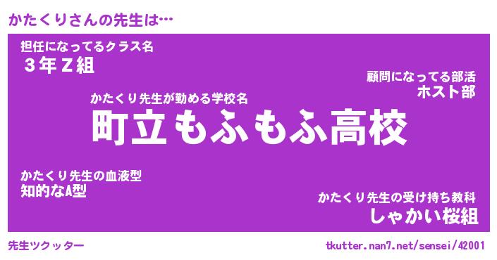 | 意味不明あだ名 | 『ペロリンかたくり』『永久保存かたくり』 |