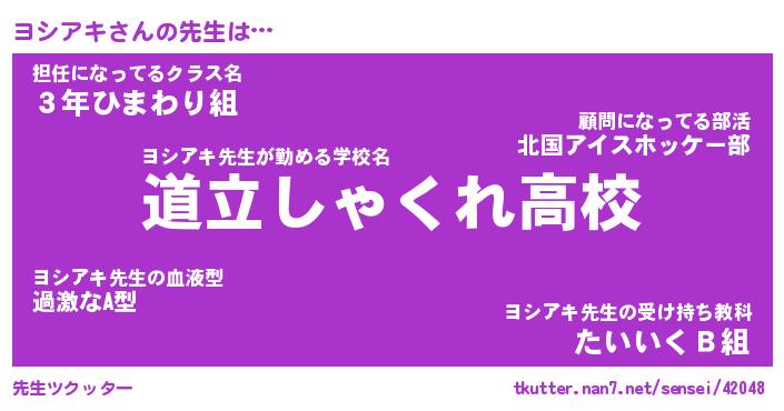 | 意味不明あだ名 | 『ペロリンヨシアキ』『永久保存ヨシアキ』 |