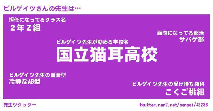 | ヒーロー風カッコイイあだ名 | 『スーパービルゲイツ』『魔戒騎士ビル』 |