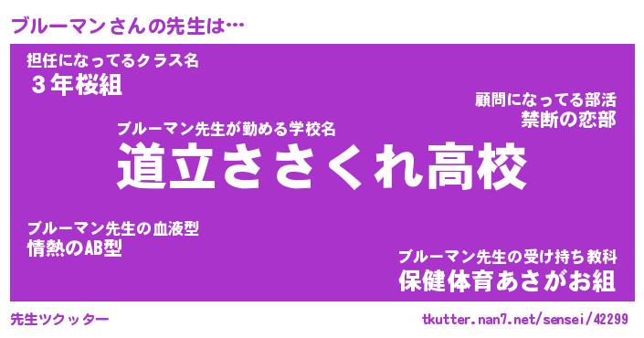 | 自動車の名前っぽいあだ名 | 『ブルティマ』『ブスラー』『ブント』 |