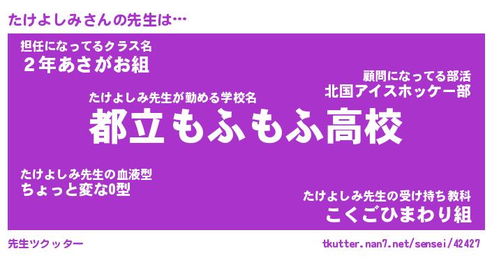 | ファンタジー風あだ名 | 『タケフェル』『エターナルタケヨシミー』 |