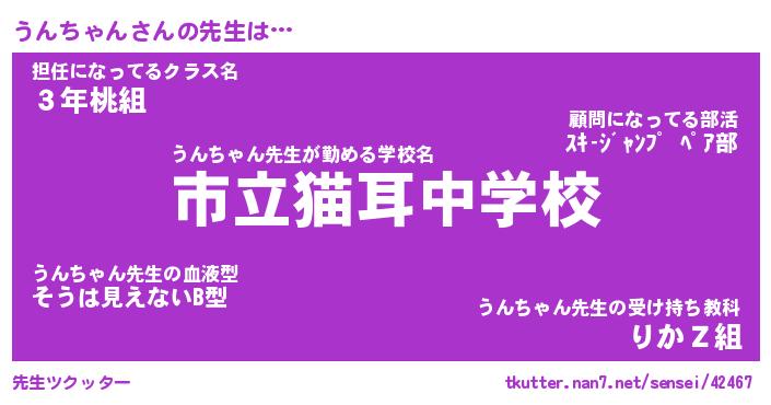 | ピコ太郎風あだ名 | 『ウコ太郎』『ピウ八郎』『ウン三郎』 |