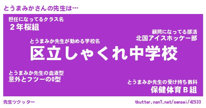 | ポケモン風あだ名 | 『トウチュウ』『トウマダネ』 |