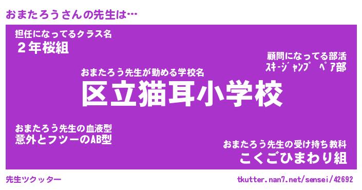 | ファンタジー風あだ名 | 『オマフェル』『エターナルオマタロウー』 |