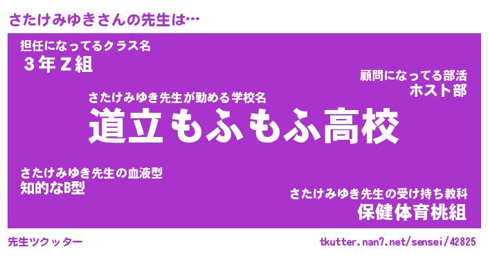 | 肩書あだ名 | 『さたけみゆき店長』『さたけみゆき教頭』 |