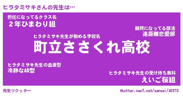 | ヒーロー風カッコイイあだ名 | 『スーパーヒラタミサキ』『銀牙騎士ヒラ』 |