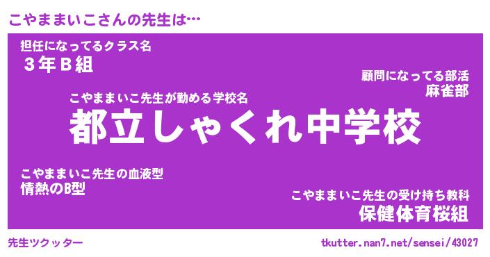 | 伝説のあだ名 | 『不死鳥のスナイパーこやままいこ』 |