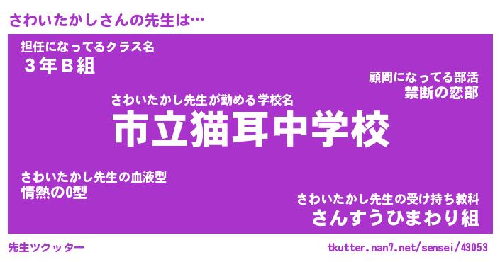 | ピコ太郎風あだ名 | 『サコ次郎』『ピサ次郎』『サワ史郎』 |