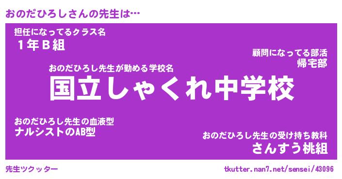 | 伝説のあだ名 | 『伝説のスナイパーおのだひろし』 |