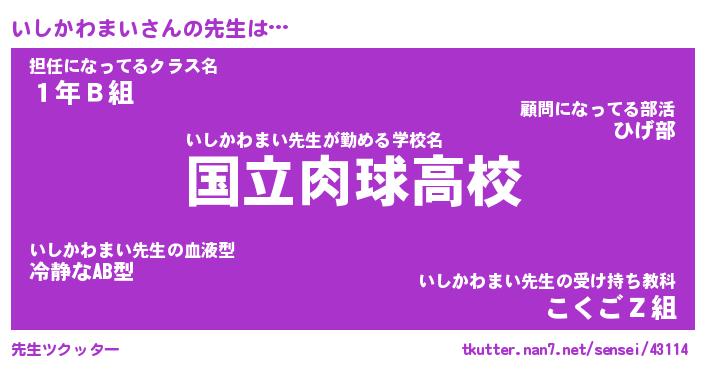 | ヒーロー風カッコイイあだ名 | 『スーパーイシカワマイ』『暗黒騎士イシ』 |