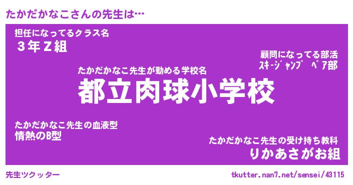 | ヒーロー風カッコイイあだ名 | 『スーパータカダカナコ』『黄金騎士タカ』 |