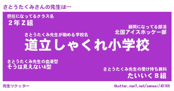 | 伝説のあだ名 | 『不死鳥のスナイパーさとうたくみ』 |