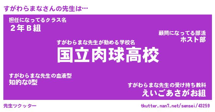 | ヘコむあだ名 | 『すがふぇ~』『なまこ酢』 |