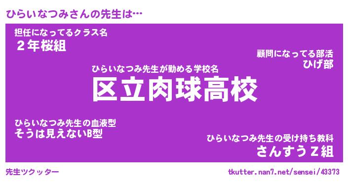 | ヘコむあだ名 | 『ひらふぇ~』『なまこ酢』『ひらを』 |