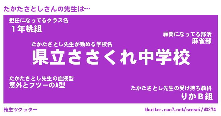 | 伝説のあだ名 | 『不死鳥のスナイパーたかたさとし』 |