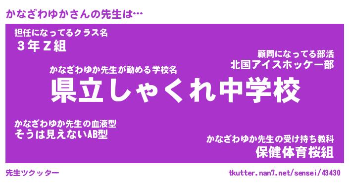 | 伝説のあだ名 | 『不死鳥のスナイパーかなざわゆか』 |