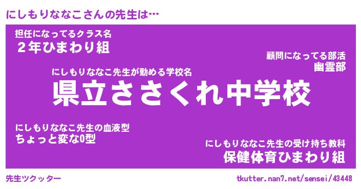 | ヘコむあだ名 | 『にしもー』『なまこ酢』 |