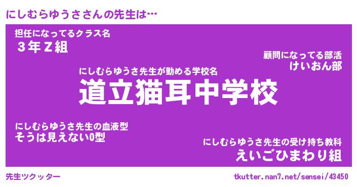 | ヘコむあだ名 | 『にしにー』『酢こんぶ』『にし太郎』 |