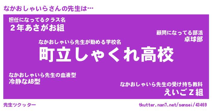| 伝説のあだ名 | 『封印されしスナイパーなかおしゃいら』 |