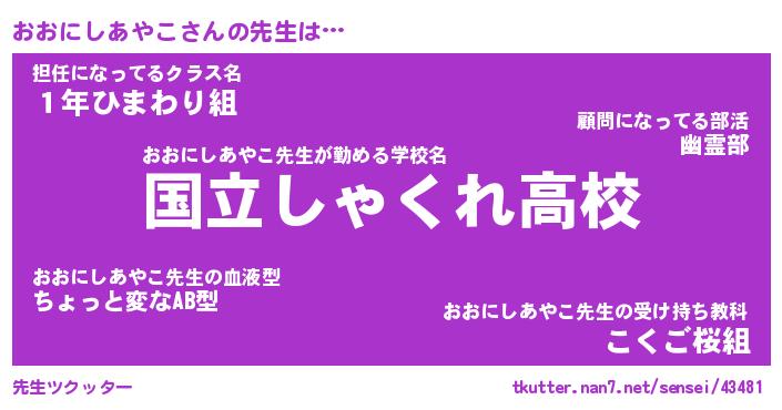 | 伝説のあだ名 | 『伝説のスナイパーおおにしあやこ』 |