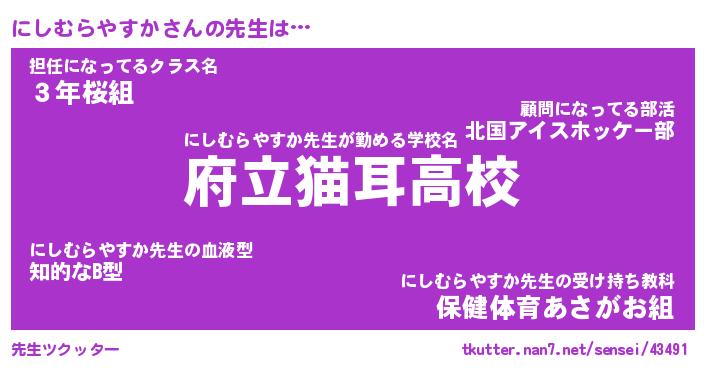 | 肩書あだ名 | 『にしむらやすか社長』 |