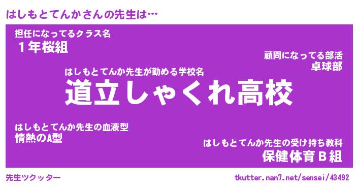 | 伝説のあだ名 | 『不死鳥のスナイパーはしもとてんか』 |