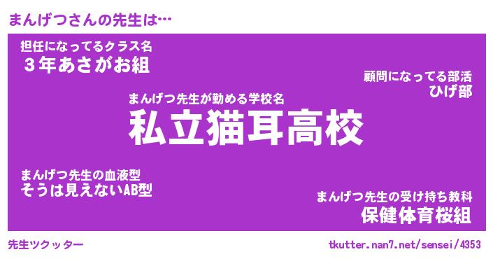 | 意味不明あだ名 | 『ペロリンまんげつ』『永久保存まんげつ』 |