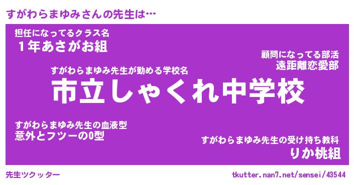 | 伝説のあだ名 | 『伝説のスナイパーすがわらまゆみ』 |