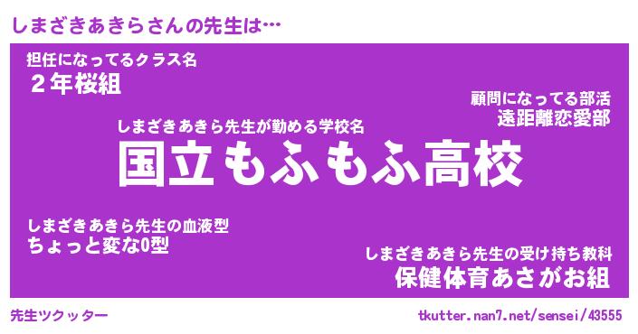 | ヘコむあだ名 | 『しまにゅー』『豆乳』『しまっぺ』 |