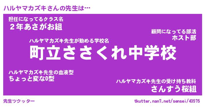 | 伝説のあだ名 | 『封印されしスナイパーハルヤマカズキ』 |