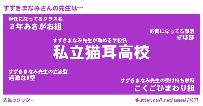 | ヒーロー風カッコイイあだ名 | 『スーパースズキマナミ』『炎刃騎士スズ』 |