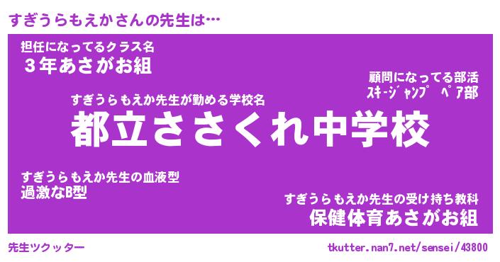 | 伝説のあだ名 | 『不死鳥のスナイパーすぎうらもえか』 |