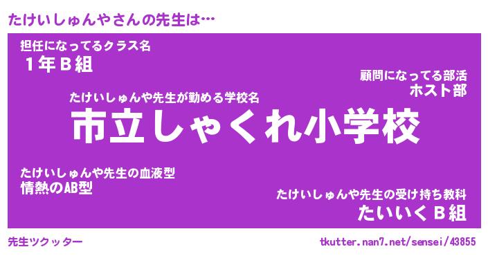 | 伝説のあだ名 | 『伝説のスナイパーたけいしゅんや』 |