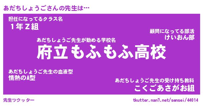 | ポケモン風あだ名 | 『アダチュウ』『アダチダネ』 |