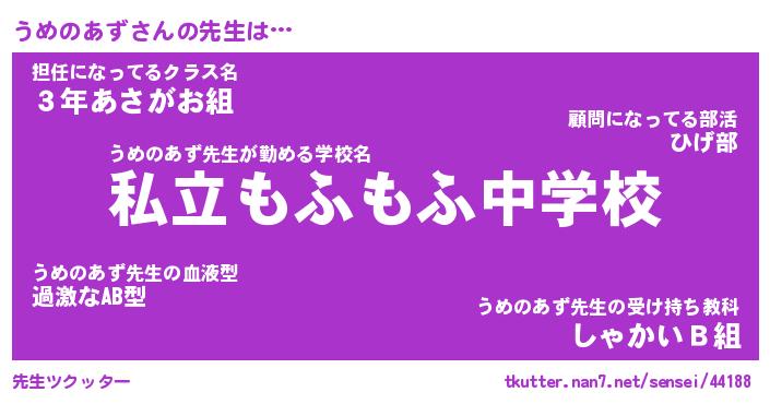 | ファンタジー風あだ名 | 『ウメフェル』『エターナルウメノアズー』 |