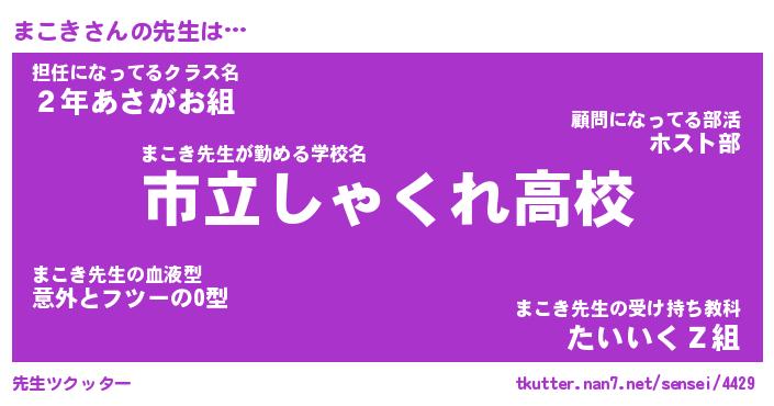 | ヒーロー風カッコイイあだ名 | 『スーパーマコキ』『ウルトラまこきマン』 |