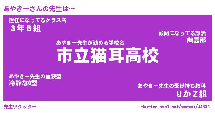 | ファンタジー風あだ名 | 『アヤフェル』『エターナルアヤキーー』 |