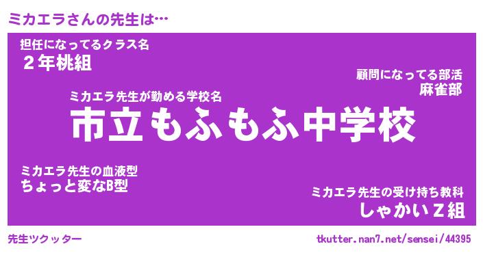 | ファンタジー風あだ名 | 『ミカフェル』『エターナルミカエラー』 |