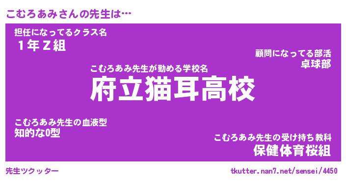 | ファンタジー風あだ名 | 『コムフェル』『エターナルコムロアミー』 |