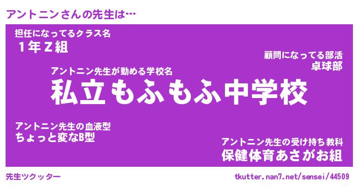 | ファンタジー風あだ名 | 『アンフェル』『エターナルアントニンー』 |