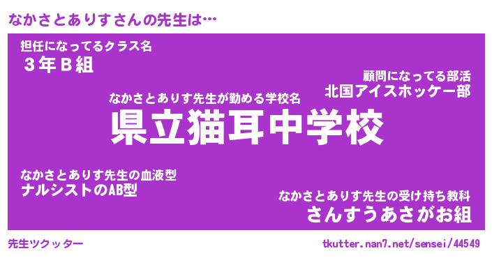 | 男性向けラノベタイトル風あだ名 | 『なかさとありすの憂鬱』 |