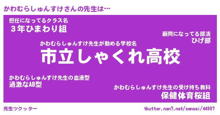 | 伝説のあだ名 | 『伝説のスナイパーかわむらしゅんすけ』 |