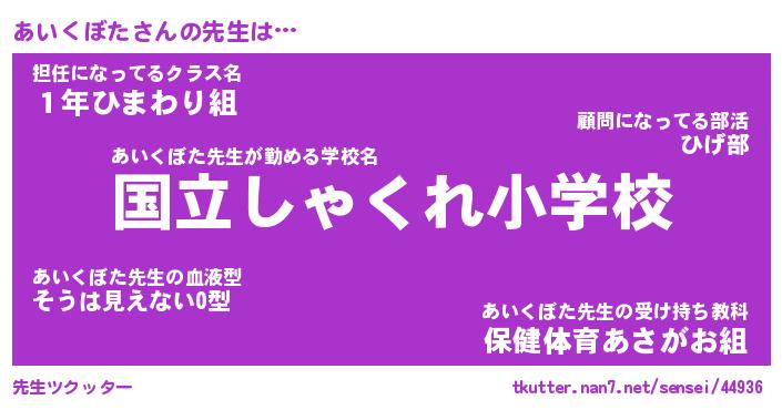 | 伝説のあだ名 | 『伝説のスナイパーあいくぼた』 |